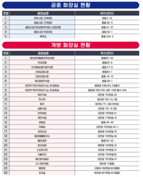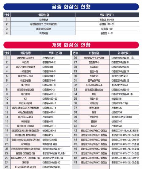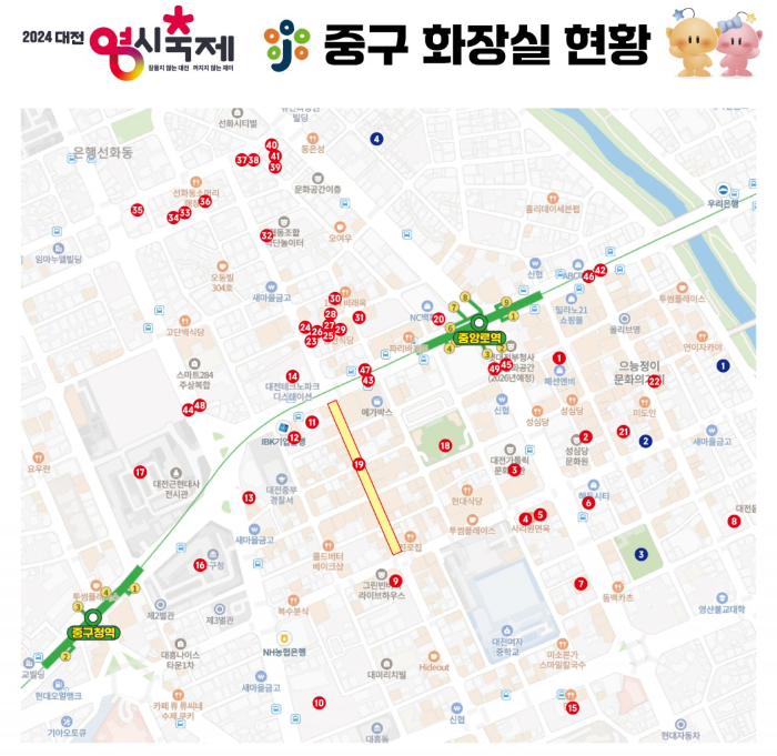 카테고리 없음 대전 0시 축제 화장실 이용안내 by NEWS.SweBinNar 2024. 8. 9. 반응형 대전 0시 축제 주변은 지하상가와 지하철이 있는 곳으로 화장실 이용이 어렵지 않습니다만, 정확한 위치가 궁금하신 분들은 아래 지도를 통해 확인해보세요!! 중구 화장실 현황 동구 화장실 현황 반응형 공유하기 게시글 관리 NEWS.SweBinNaR